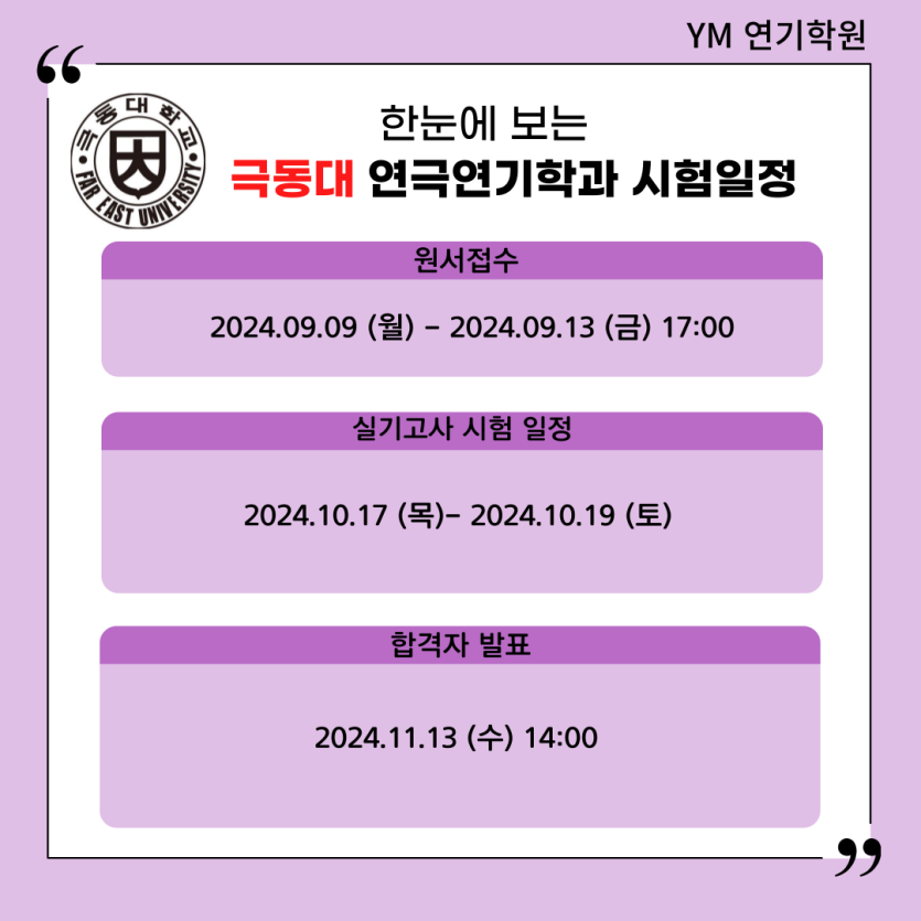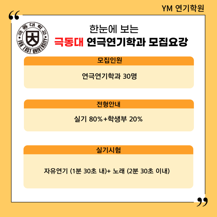 [YM연기학원] 2025학년도 극동대 연극연기학과 시험일정/입시요강