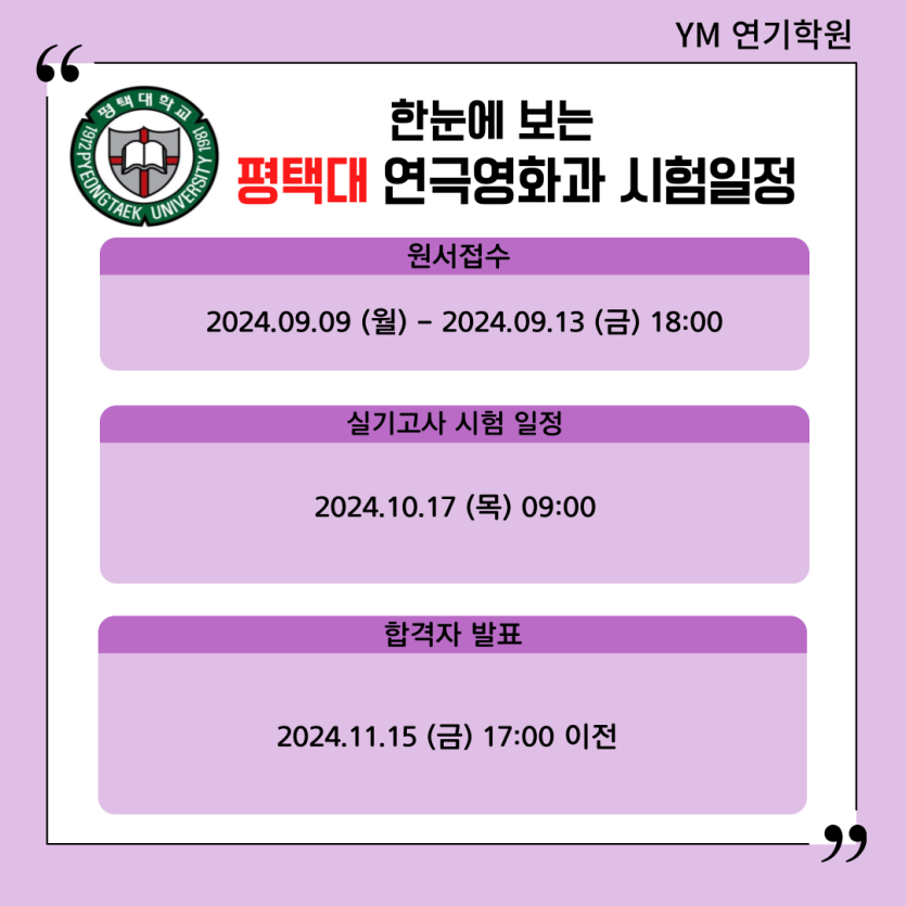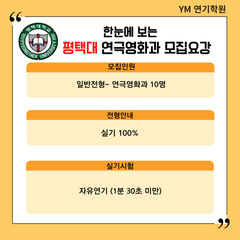 [YM연기학원] 2025학년도 평택대 연극영화과 연기전공 시험일정/입시요강