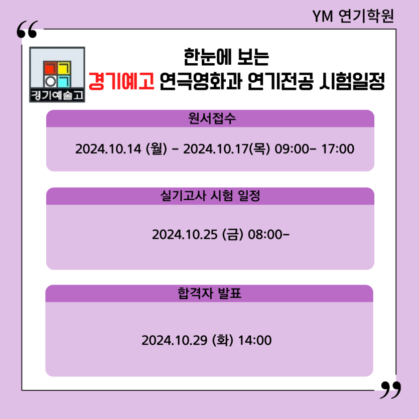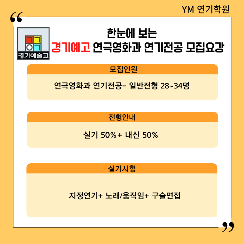 [YM연기학원] 2025학년도 경기예고 연극영화과 연기전공 시험일정/입시요강