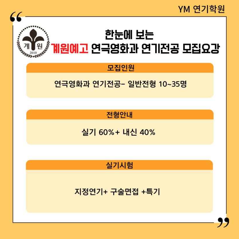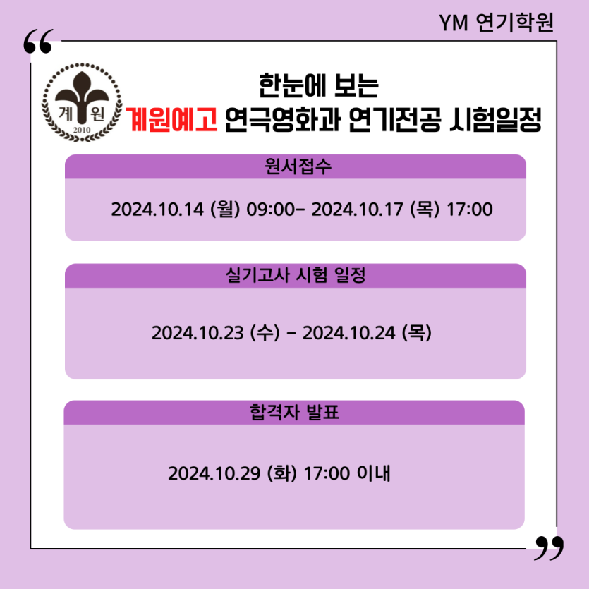 [YM연기학원] 2025학년도 계원예고 연극영화과 연기전공 시험일정/입시요강