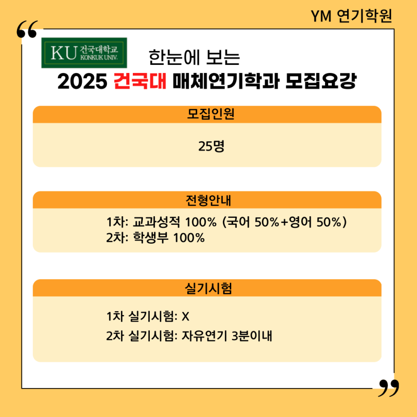 [YM연기학원] 2025학년도 건국대 매체연기학과 연기전공 입시요강