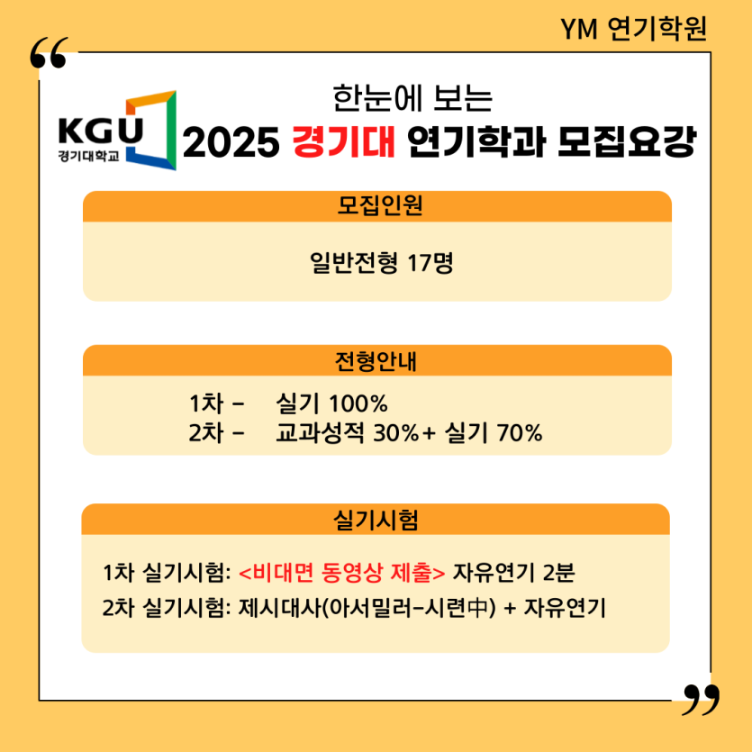 [YM연기학원] 2025학년도 경기대 연기학과 입시요강